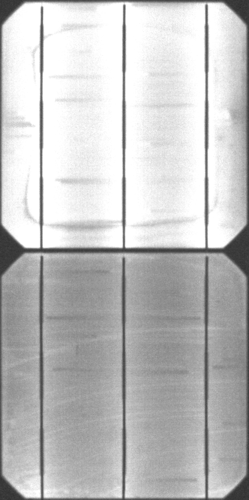 Wij beoordelen de EL beelden op basis van de MBJ criteria, de laatste versie van deze criteria kunnen hier gedownload worden. Door de hoge kwaliteit van onze beelden kunnen we de kleinste cracks detecteren. De beoordelingscriteria zijn opgesteld door het MBJ partnernetwerk in samenwerking met TÜV SÜD en andere instanties die zich bezighouden met het testen van zonnepanelen. Bij de beoordeling van de cracks kijken we niet alleen naar de huidige invloed op de opbrengst van een paneel, maar ook naar de invloed op de verwachte opbrengst in de toekomst. De micro cracks worden ingedeeld in 3 soorten, niet-kritisch, kritisch en zeer kritisch. De beoordeelde cracks worden uiteindelijk gebruikt voor een classificatie van het paneel in een klasse A tot en met D. Deze beoordeling sluit aan bij de ISO-2859-1 en AQL methode voor het uitvoeren en accepteren of afwijzen van een steekproef. Hieronder staan enkele voorbeelden van de verschillende soorten cracks die wij aangetroffen hebben in de panelen die we getest hebben.