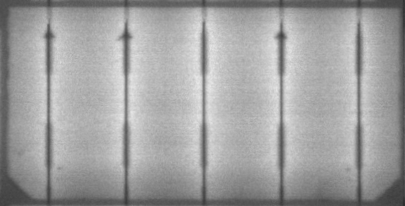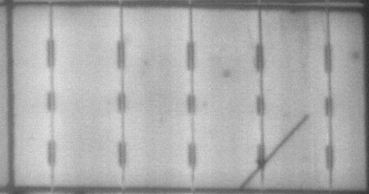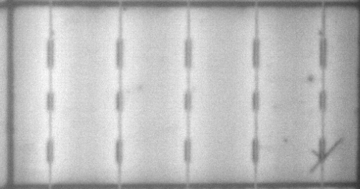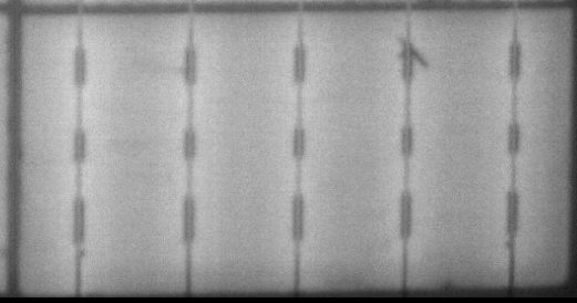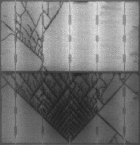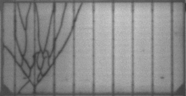 ![]() Figure 3 A cell with V-shaped cracks on 4 of the 5 bus bars |