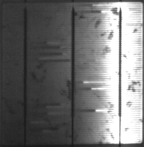 ![]() Figure 11 Defective “fingers”. These cause hotspots that influence the yield from the cell and the panel |